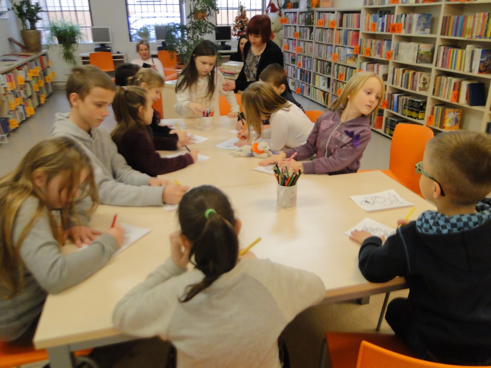Pierwsze zajęcia dla dzieci w ramach ferii odbyły się u nas 19 stycznia. W „Spotkaniu z Doktorem Dolittle” wzięły udział dzieci ze Świetlicy STOKROTKA. W trakcie imprezy zapoznały się z doktorem i jego zwierzętami. Z uwagą wysłuchały opowieści o przygodzie doktora Dolittle, który ze swoimi przyjaciółmi - zwierzętami, wybrał się w morską podróż do Afryki, aby ratować chore małpki. Dzieci chętnie wzięły udział w zabawie rysunkowej, kolorowały zwierzęta Doktora Dolittle, a następnie poruszając swoją wyobraźnię opowiadały o nich. Spotkanie zakończono grą w x-boxa i na komputerach.