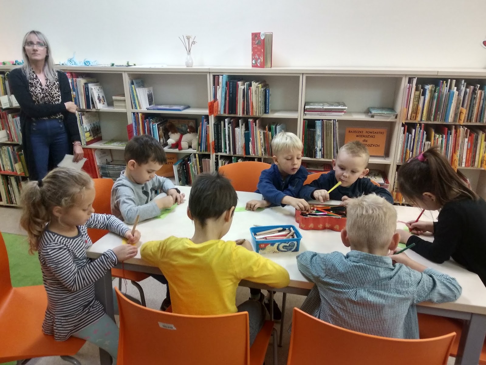 zabawy i nauki z książką. Przedszkolaki wraz z bibliotekarką